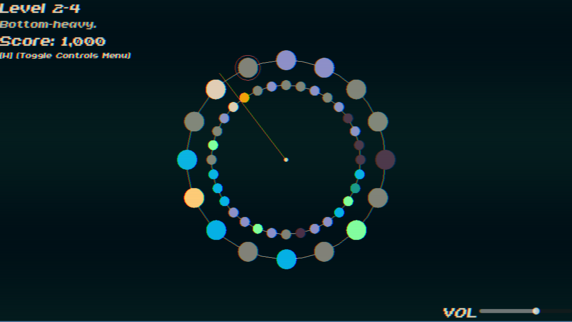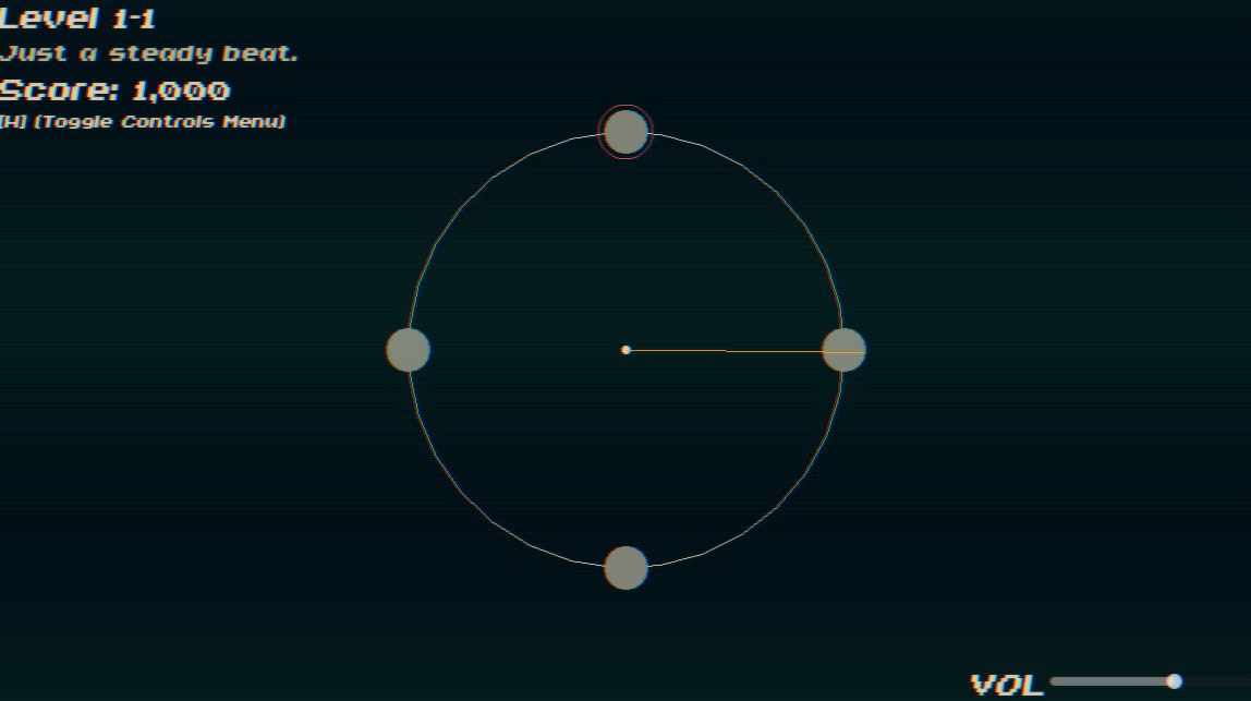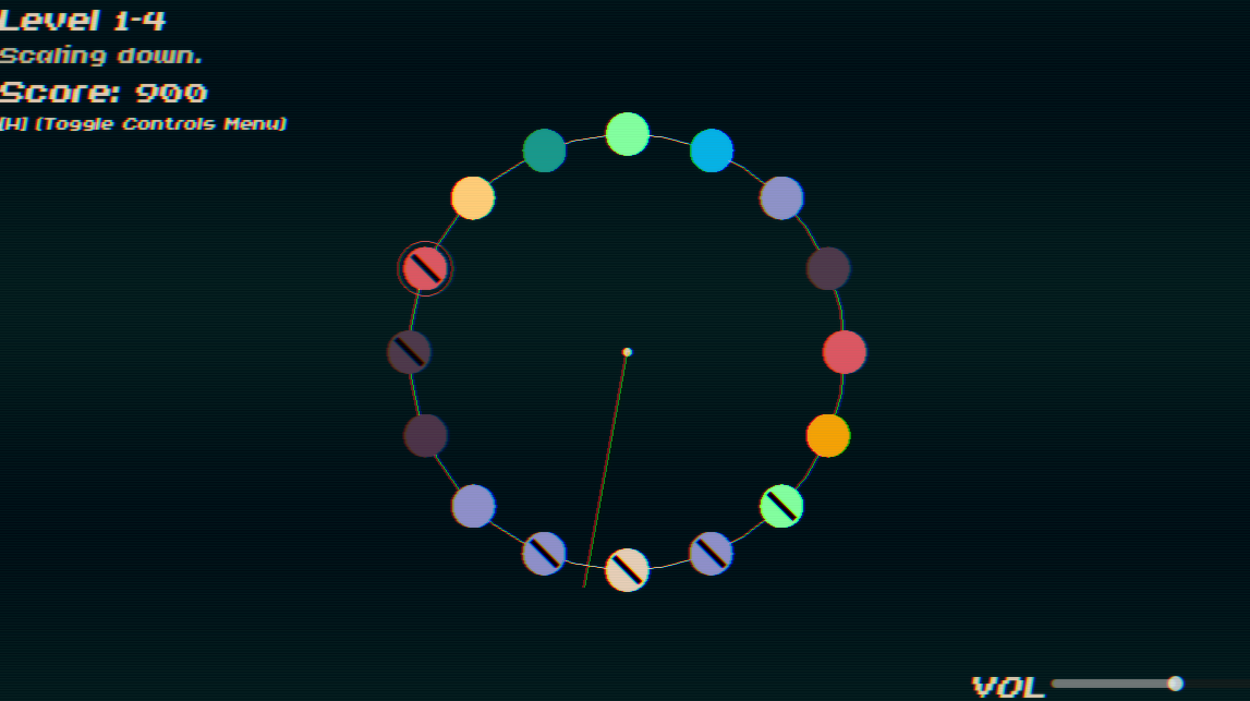 CR//KLS (pronounced "circles") is a circular music sequencer puzzle game. Each level you are provided with a goal pattern to then match on the sequencer. Once you are confident you've got it right, submit your input. If you got any notes wrong, you will lose points for the current level and incorrect notes will be marked. If your score reaches 0, your current run will end.